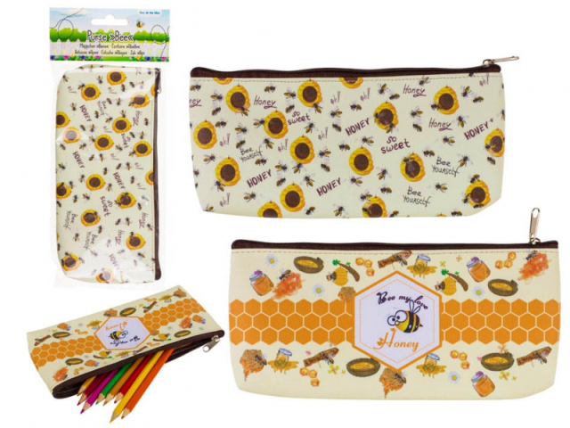 Penál na tužky a jiné drobnosti s motivem včel na zip